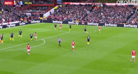 第34分钟,B费角球助攻,卡塞米罗头槌破门,曼联客场1-0领先森林